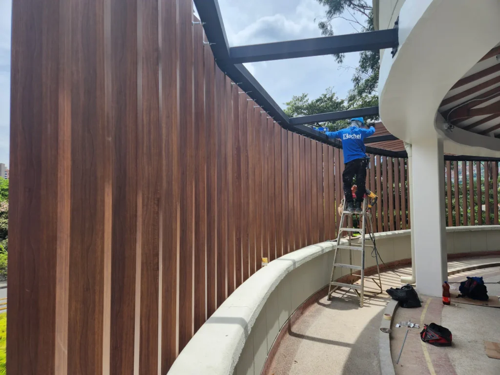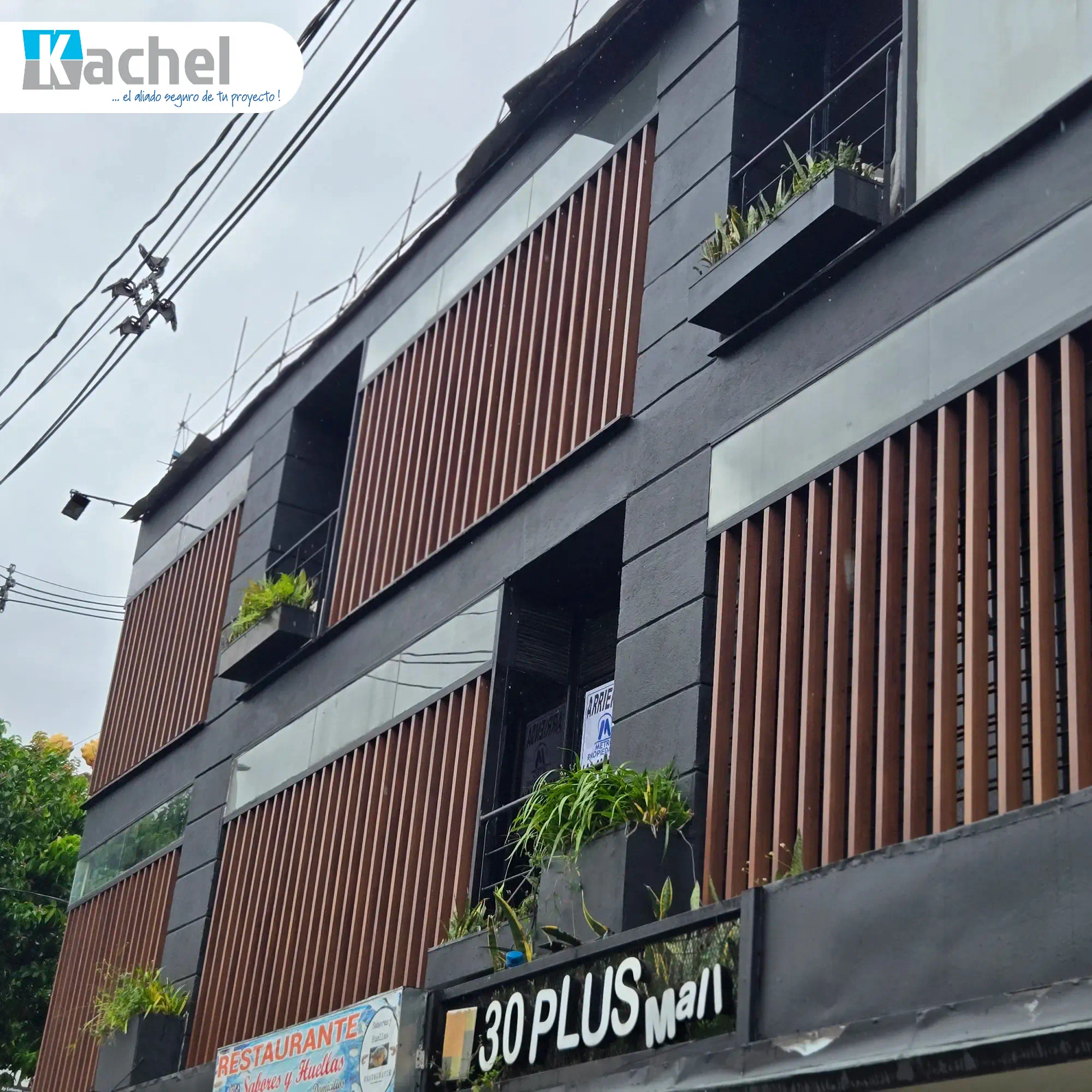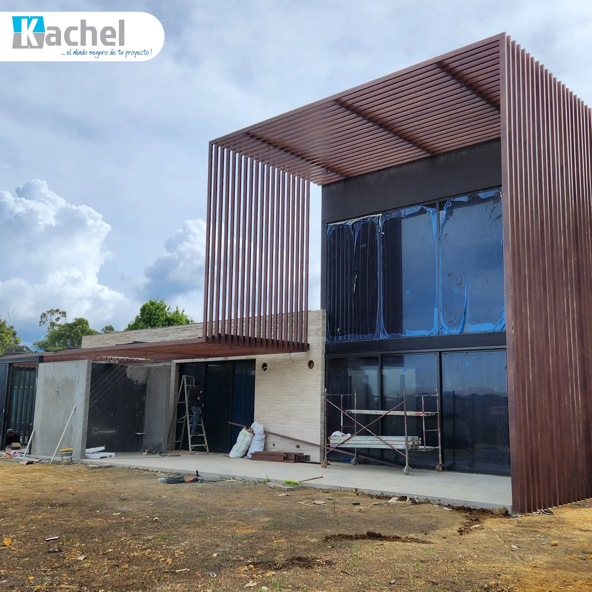En Kachel Colombia, los perfiles de aluminio con acabado madera representan la fusión perfecta entre diseño, eficiencia bioclimática y alta durabilidad. Este servicio está pensado para quienes buscan soluciones arquitectónicas modernas y sostenibles en Colombia, ideales para fachadas, pérgolas, cortasoles, parqueaderos y estructuras decorativas tanto en espacios residenciales como comerciales o industriales. Fabricados con aluminio extruido y acabados mediante pintura electrostática sublimada tipo madera, nuestros perfiles ofrecen una apariencia cálida y sofisticada, con la resistencia y el bajo mantenimiento que exige el clima colombiano.