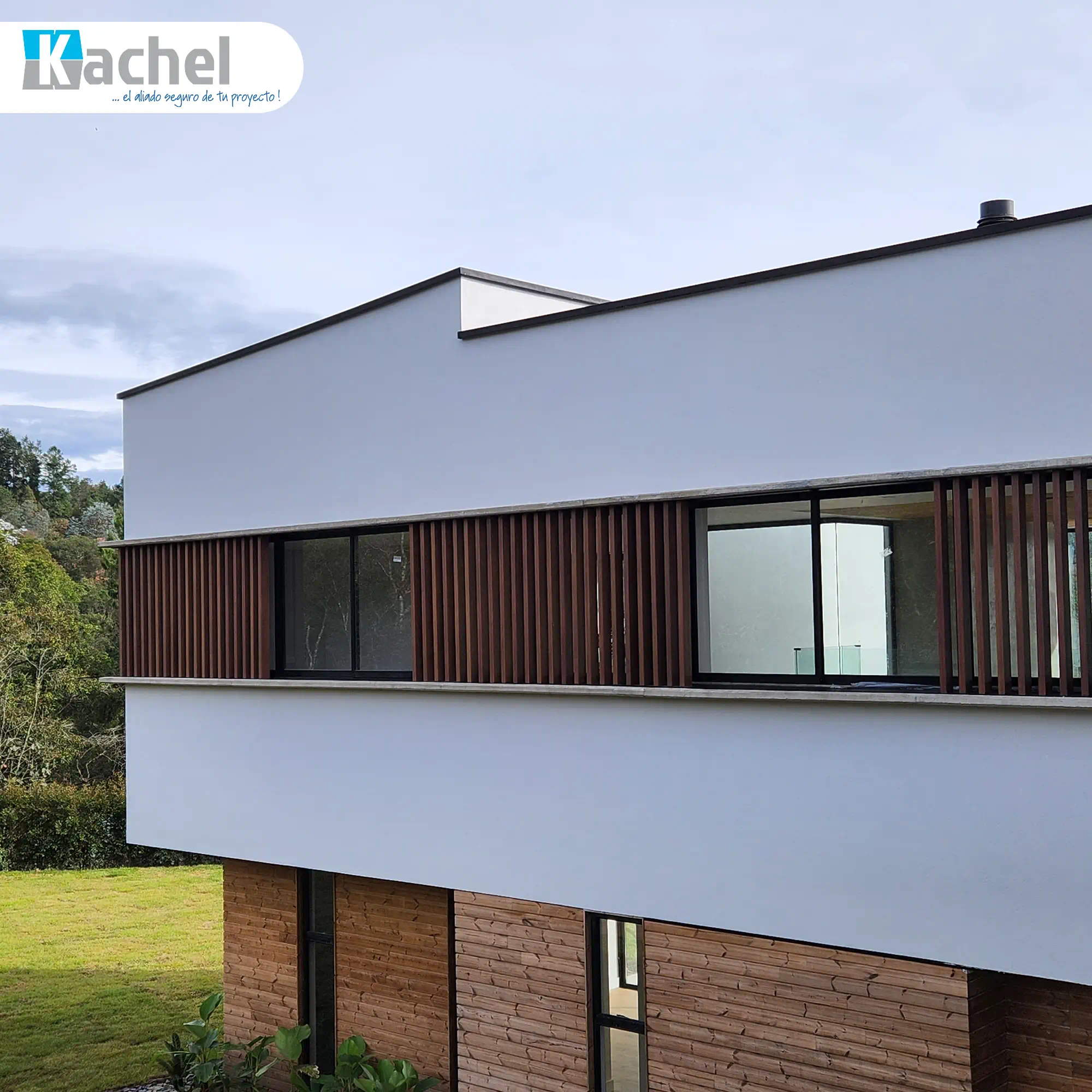 Los perfiles de aluminio madera de Kachel Colombia destacan por su versatilidad, resistencia y eficiencia energética. Gracias a sus propiedades bioclimáticas, contribuyen al control térmico y lumínico, mejorando el confort interior y reduciendo el consumo energético en edificaciones colombianas. Su instalación es rápida y segura, y su durabilidad garantiza que mantendrán su apariencia y funcionalidad incluso en condiciones climáticas extremas.